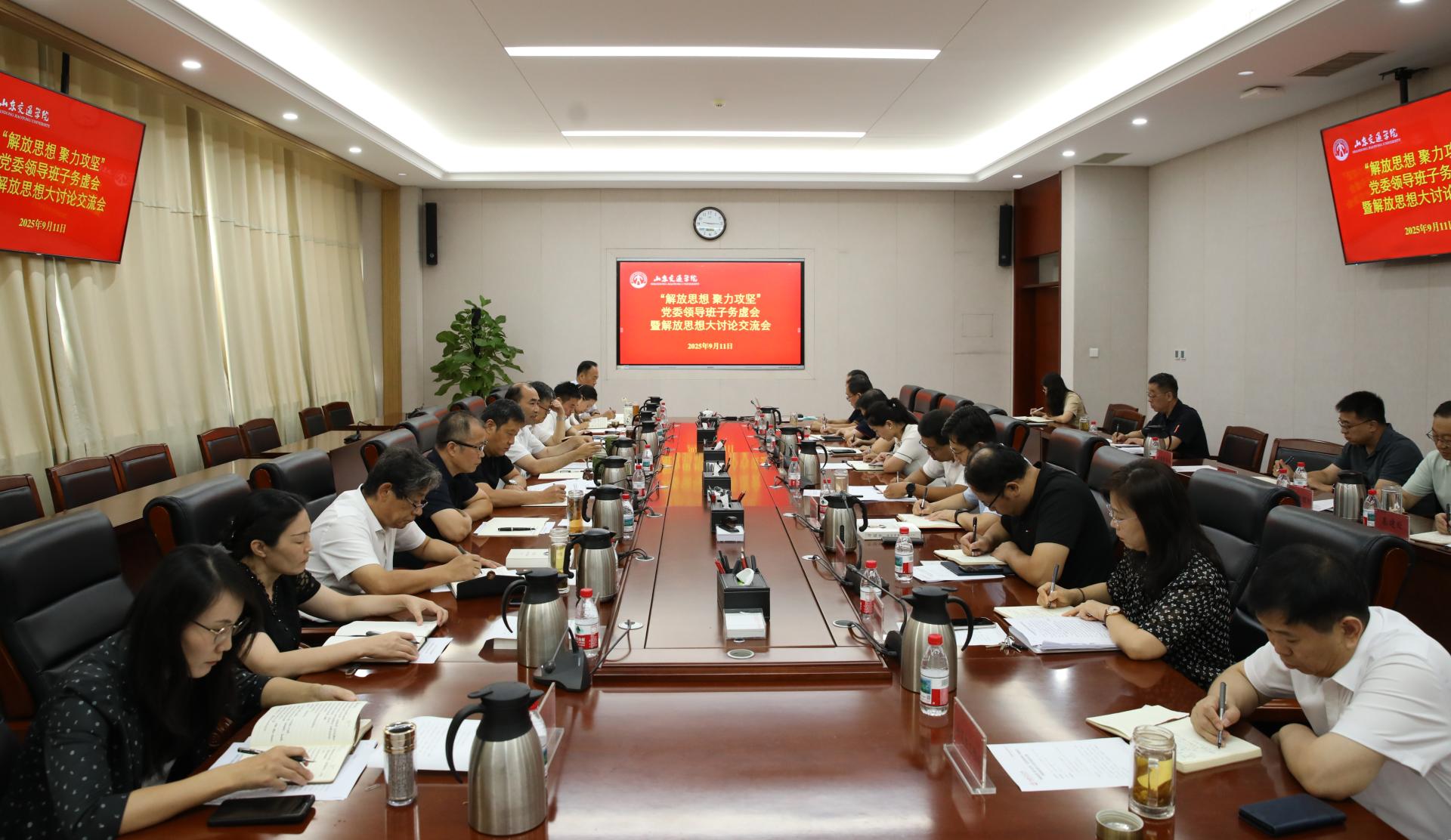 9月11日,学校在长清校区明德楼303会议室召开“解放思想 聚力攻坚”党委领导班子务虚会暨解放思想大讨论交流会。学校全体党委领导班子成员出席。会议由党委书记王伟主持。