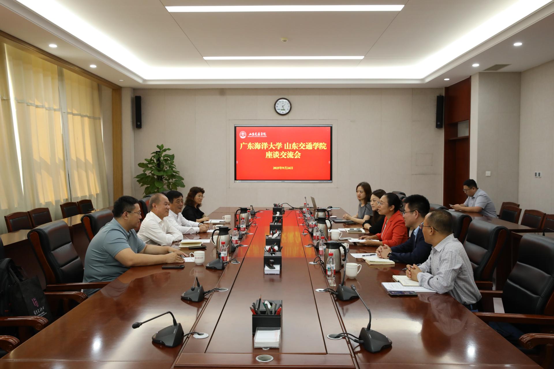张萌萌代表学校对邓逢光一行的到来表示诚挚欢迎,详细介绍了学校总体概况、学科布局、人才培养及国际合作等方面情况。她指出,山东交通学院与广东海洋大学在国际化办学、学科建设等方面具有很大合作空间,希望以此次交流为起点,进一步拓宽合作广度、挖掘合作深度、创新合作方式、增强合作实效,携手推动两校教育事业高质量发展,为中外合作办学与国际化教育注入新动能。