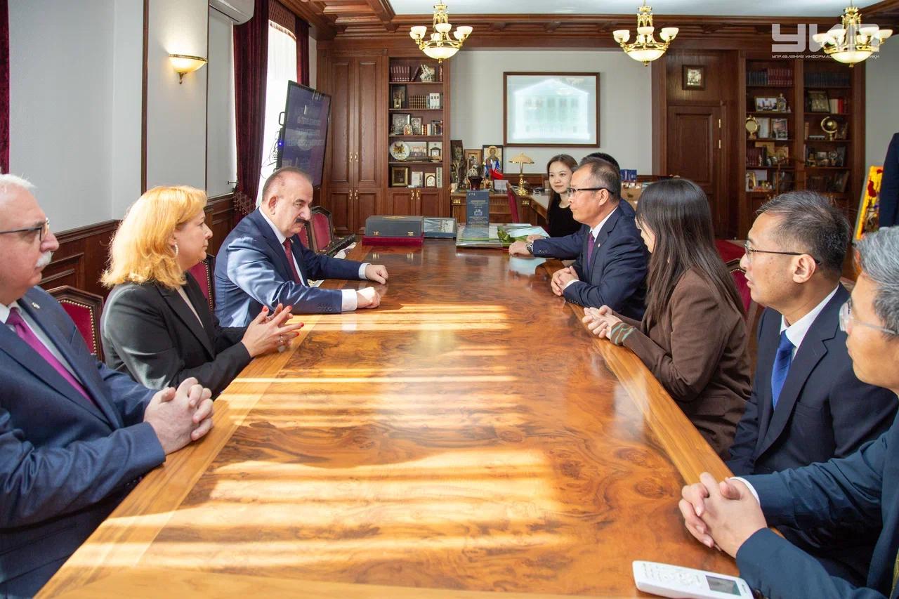 随后,访问团与白俄罗斯国际管理与创业学院校长、白俄罗斯国家科学院院士、俄罗斯科学院院士亚历山大·茨刚诺夫举行工作会议,就围绕共建教师学术交流机制,重点开展“一带一路”沿线国家法律政策、经济制度与企业体制比较研究,推进高水平联合科研等达成共识。