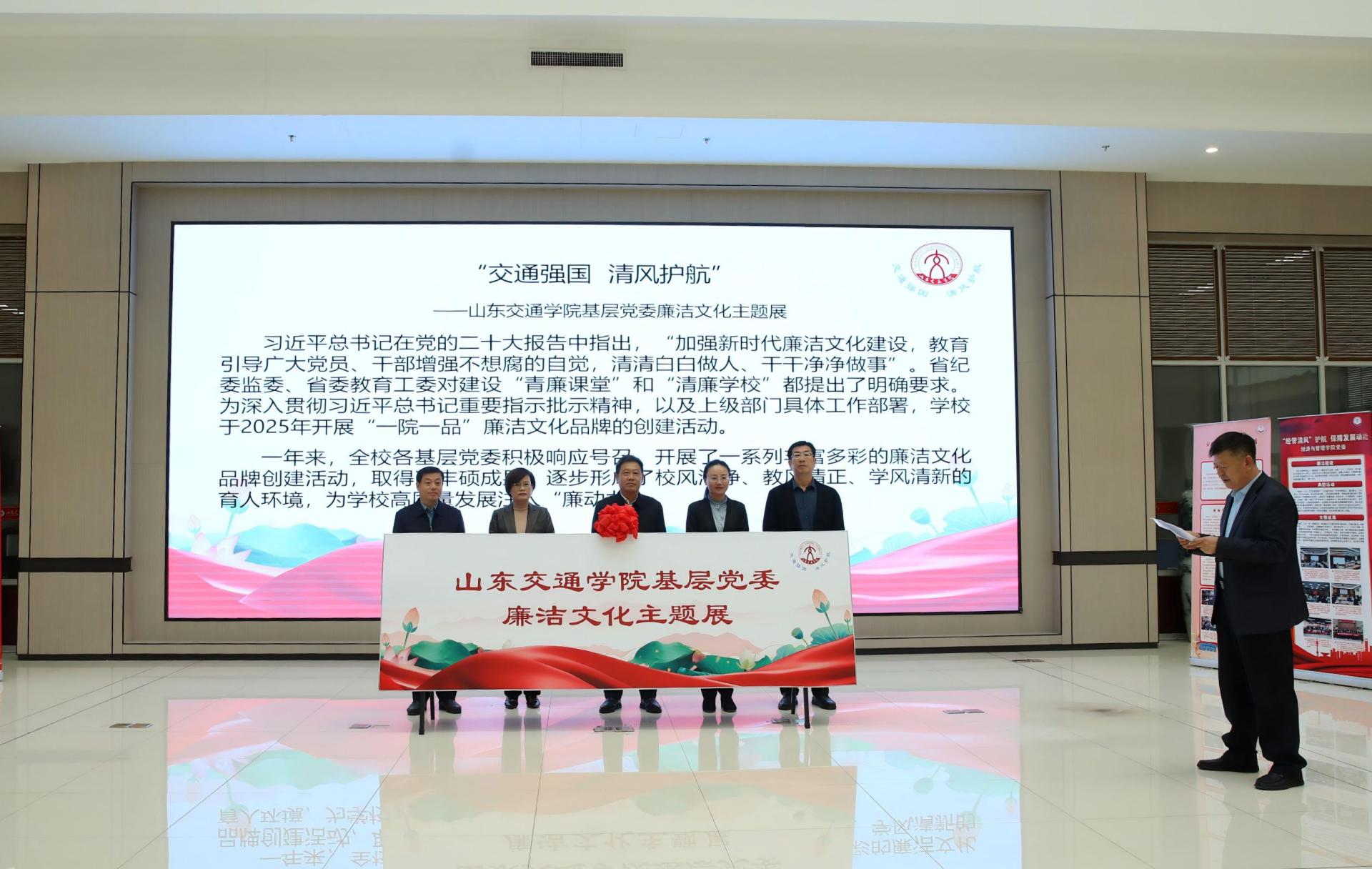 王伟、济南长清大学城纪检监察工委书记商政、长清区纪委监委纪委副书记董玲、山东工艺美术学院纪委书记谷朝勇、山东管理学院纪委书记王兴盛共同为学校基层党委廉洁文化主题展揭幕。与会人员共同参观了学校基层党委廉洁文化主题展、《共产党宣言》主题馆。