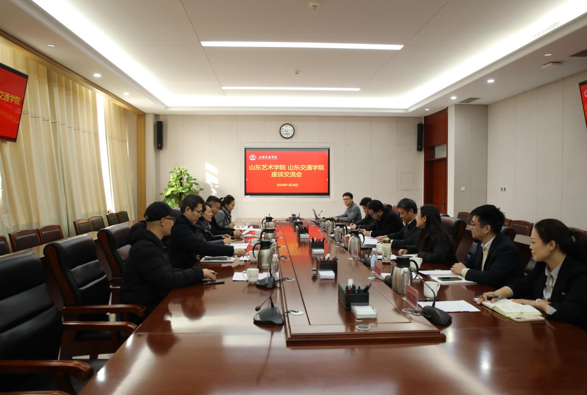 1月28日上午,山东艺术学院党委书记徐梅一行来我校调研交流。座谈会在长清校区明德楼303会议室召开。学校党委书记王伟,党委委员、副院长张萌萌出席。会议由张萌萌主持。