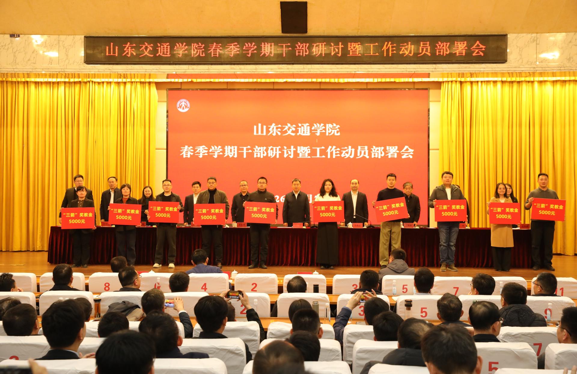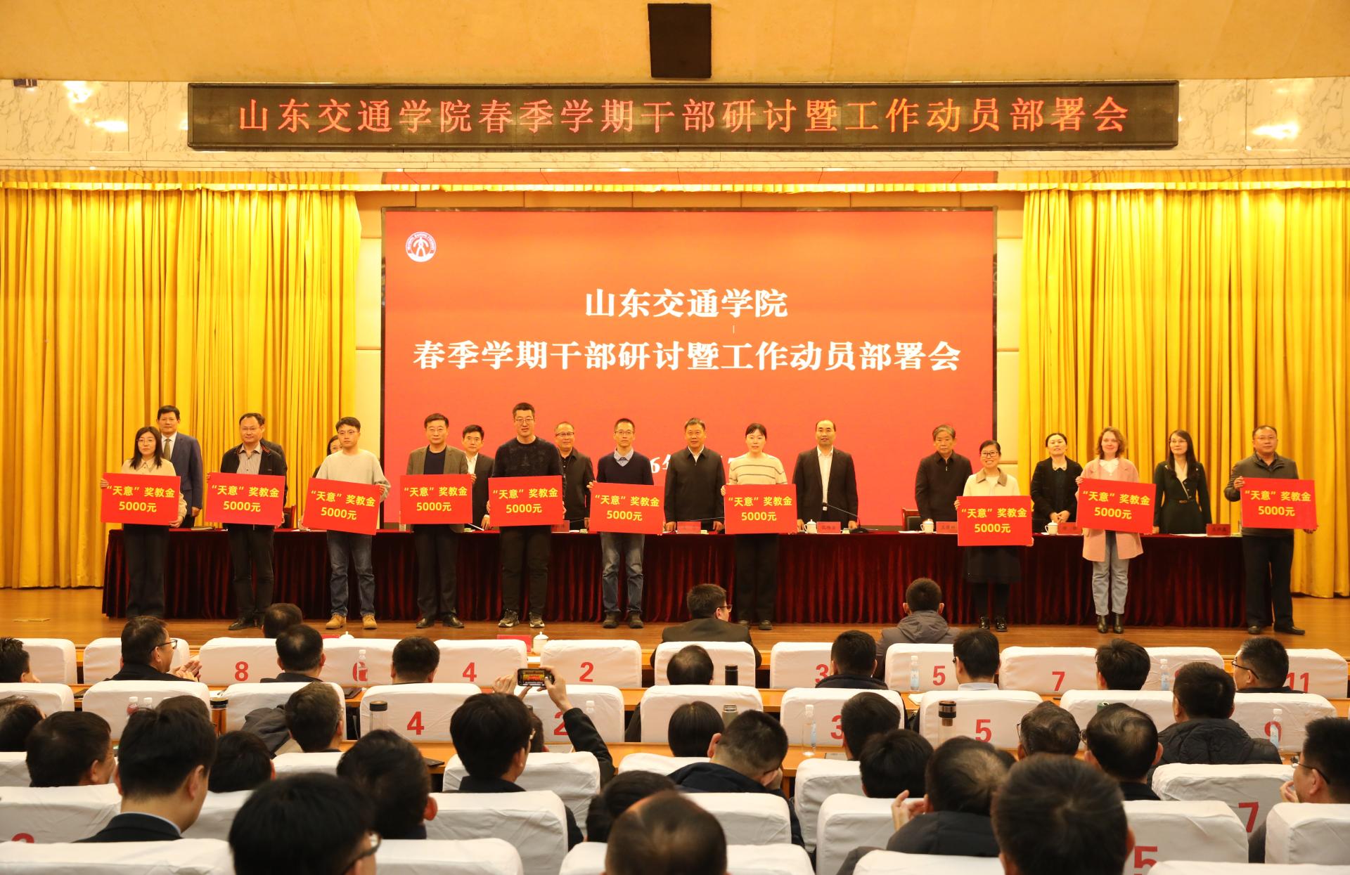 为迎接建校70周年,充分激发广大教师及职工的工作热情、创造潜能,学校教育发展基金会联系山东天意机械股份有限公司、山东三箭建设工程管理有限公司各出资100万设立奖教金。会上,山东天意机械股份有限公司副总经理尹曙光和学校领导共同为“天意”奖教金获表彰教师代表颁发奖牌、荣誉证书;山东三箭建设工程管理有限公司党委书记、董事长兼总经理孙小凯和学校领导共同为“三箭”奖教金获表彰干部职工代表颁发奖牌、荣誉证书。
