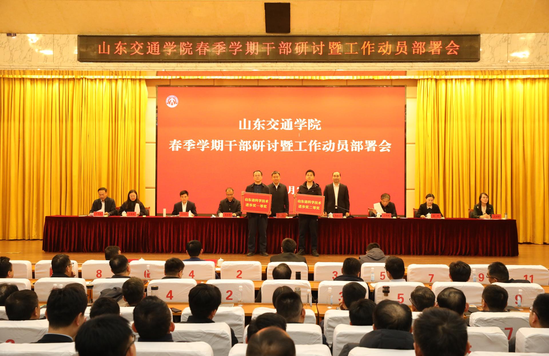 学校领导分别为创新创业竞赛国家级获奖团队,新一轮本科教育教学审核评估先进集体代表和个人代表,山东省第十届高等教育省级教学成果奖获奖人员代表,获批第三批国家一流课程负责人代表,获得省级教学、课程、教材、教改项目获奖代表,2025年度科技进步奖获奖团队,考核优秀处级领导班子,党建考核优秀党组织,绩效考核优秀单位颁发奖牌、荣誉证书。