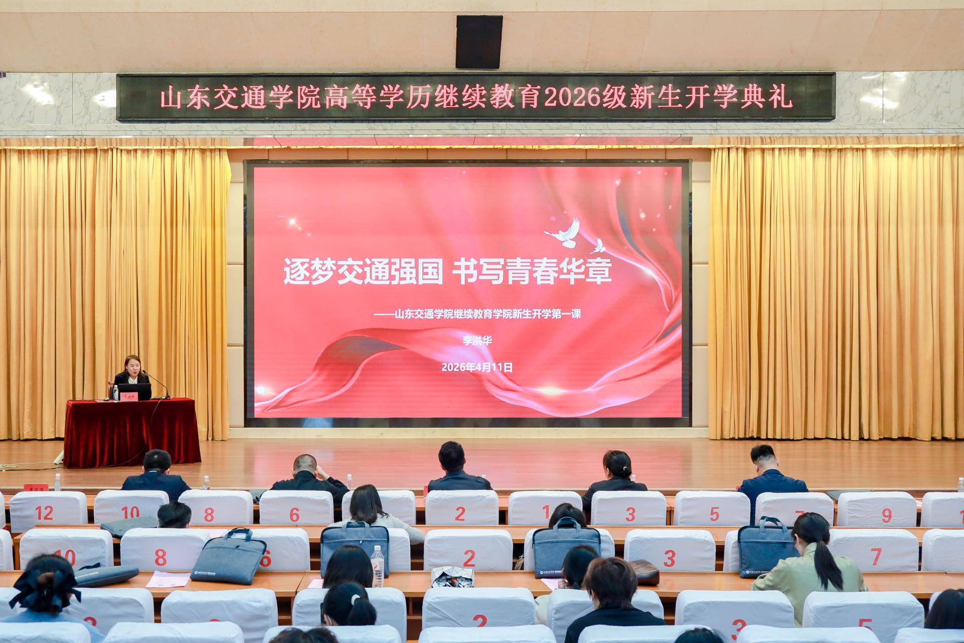 4月11日上午,学校在长清校区学术报告厅举行高等学历继续教育2026级新生开学典礼。学校党委委员、副院长张萌萌出席。
