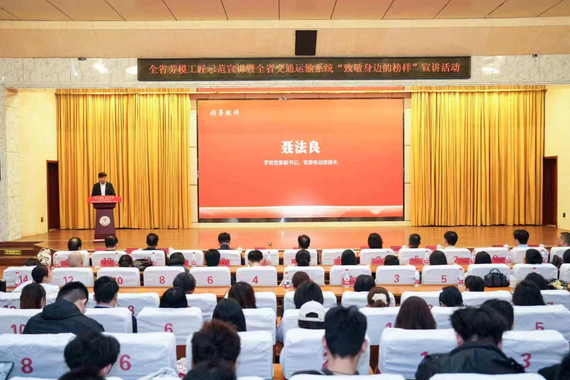 聂法良指出,劳模工匠是时代的脊梁,让先进典型进校园,对于强化大学生思想引领,树立正确职业观、价值观与人生观,努力成长为德才兼备、担当有为的新时代交通人才具有重要意义。他强调,广大青年学子要以劳模工匠为榜样,自觉树立和践行社会主义核心价值观,把个人的理想追求融入国家和民族的事业中,努力成为有理想、敢担当、能吃苦、肯奋斗的新时代好青年。