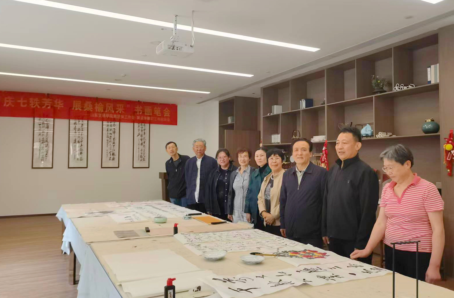 期间,书画协会理事召开会议,结合校庆安排,讨论协会培训、书画布展等工作。